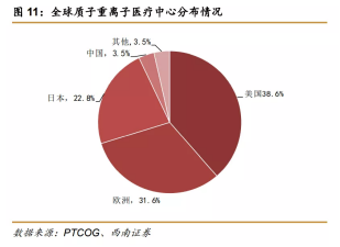 有數據統計,全球質子治療市場在 2019 年達到 6.716 億美元,預計到 2024 年將達到 12 億美元,2019-2024 年期間的復合年增長率 (CAGR)約估 為 13.1%。現階段全球接受質子治療的患者超過26萬人。從區域上來看,質子治療人群主要集中在美歐日三個地區。美國是最大的質子治療市場,目前美國擁有的質子治療中心數量最多,運營中的有37所,還有多家質子中心在建,預計未來還會長期維持主導地位。