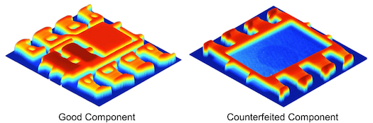檢查偽造品的一個好辦法是將待查元器件與標準的正品元器件進行比較。從下圖可以看出,同一個批次中的兩個部件外觀看起來不一樣。為了準確比較,需要檢查批號、日期代碼、部件號、制造商地址、外部標記和設備的結構。