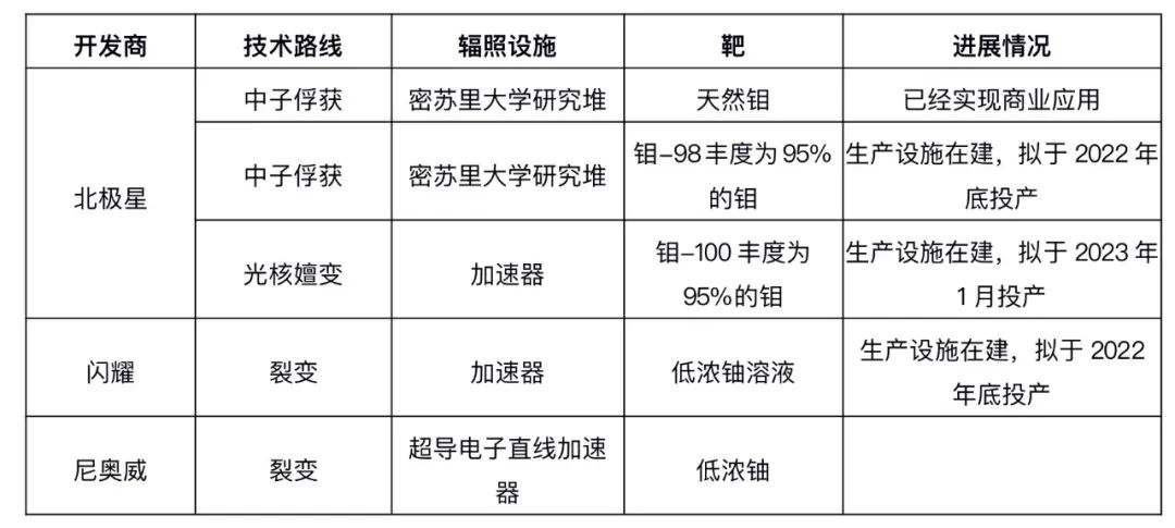 ▲ 已經或即將實現商業應用的五種新型鉬-99生產技術