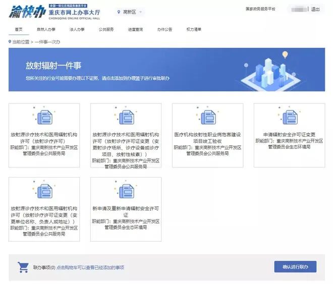 2022年5月11日,重慶日報記者從西部(重慶)科學城獲悉,為進一步解決醫療機構“一件事”多頭跑、多次跑的難題,重慶高新區公共服務局和生態環境局近日正式推行《放射診療許可證》和《輻射安全許可證》聯審聯辦,讓科學城的醫療機構辦理相關手續更加方便。