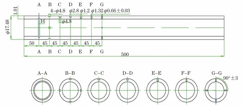 3個最大直徑為0.78 mm的通孔,其沿周向120°分布且在軸向方向分散分布,以避免相互干擾。