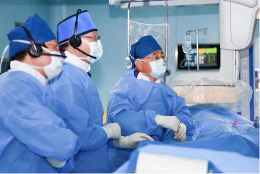 滕皋軍院士(右)和牛惠敏教授(左2)聯合實施手術