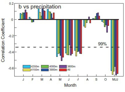 圖3.不同海拔高度的樹輪氧同位素與區域降水量的相關關系