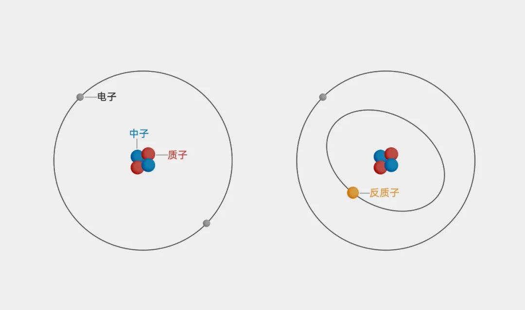 在新研究中,原子中的一個電子被反質子替代,形成了奇異的混合物質-反物質氦原子。| 圖片參考來源:Nature