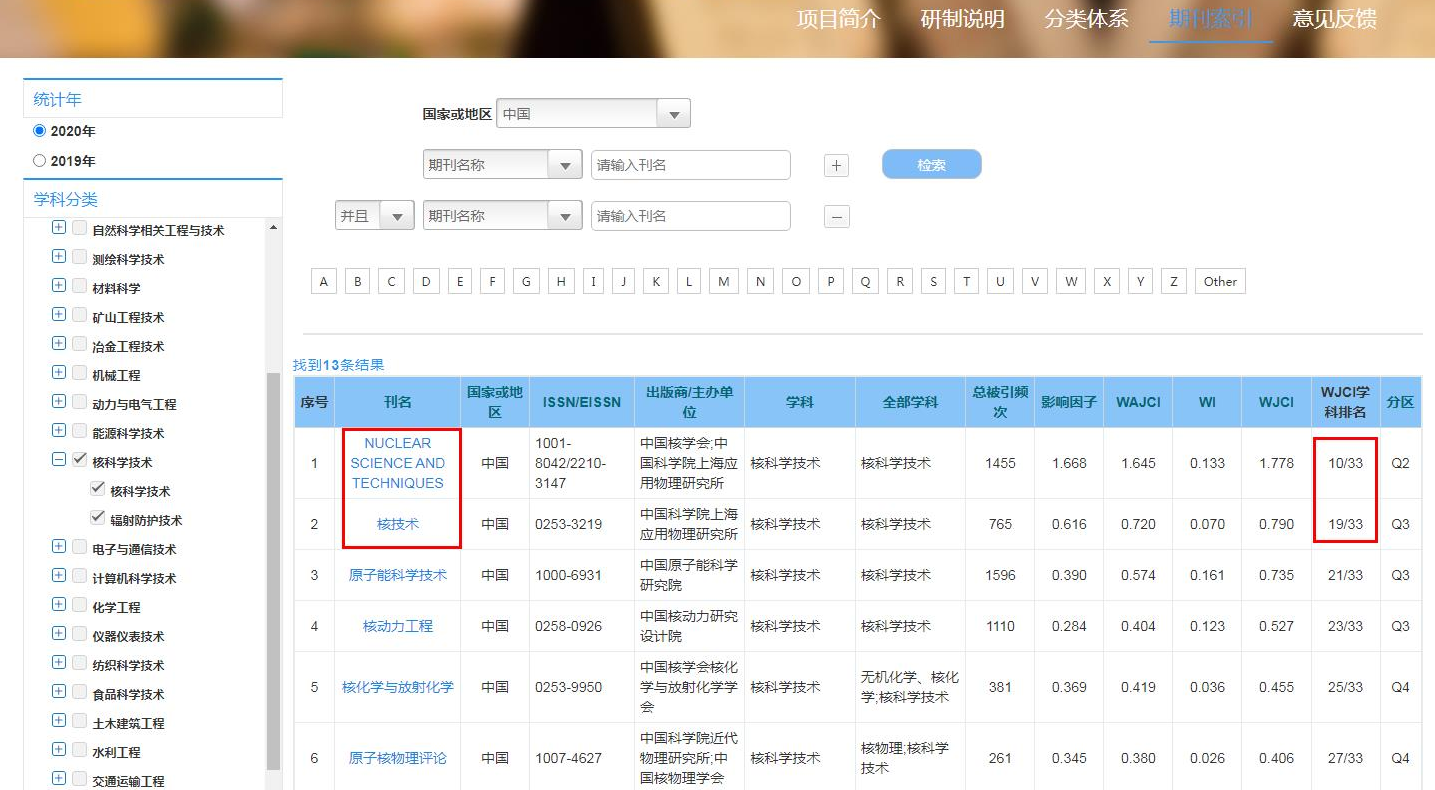 近日,由中國科學技術信息研究所、《中國學術期刊(光盤版)》電子雜志社有限公司、中國科學技術期刊編輯學會等機構聯合研制的期刊評價報告《科技期刊世界影響力指數(WJCI)報告》(2021)(簡稱:《WJCI報告》)正式發布。由中國科學院上海應用物理研究所與中國核學會共同主辦、上海市核學會參與協辦的《Nuclear Science and Techniques》、《核技術》、《輻射研究與輻射工藝學報》三種期刊同時入選。