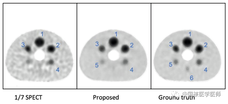 圖2:從1/7 SPECT合成標準SPECT的不同方法的視覺結果