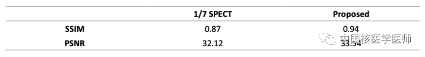 同時,根據SSIM和PSNR數據顯示(表2),合成SPCET的結果都優于1/7 SPECT。