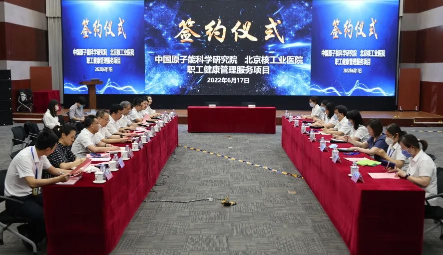 為落實原子能院“幸福中核”建設和深入推進“我為群眾辦實事”活動,切實做好職工健康管理工作,6月17日上午,原子能院與北京核工業醫院舉行職工健康管理服務項目簽約儀式。原子能院黨委書記薛小剛出席儀式,院總會計師陳首雷、副院長朱洪涌、院工會主席李立強,北京核工業醫院黨委書記何堅榮、副院長李莉、副院長夏穎、總會計師孫小永等參加會議。李立強主持會議。