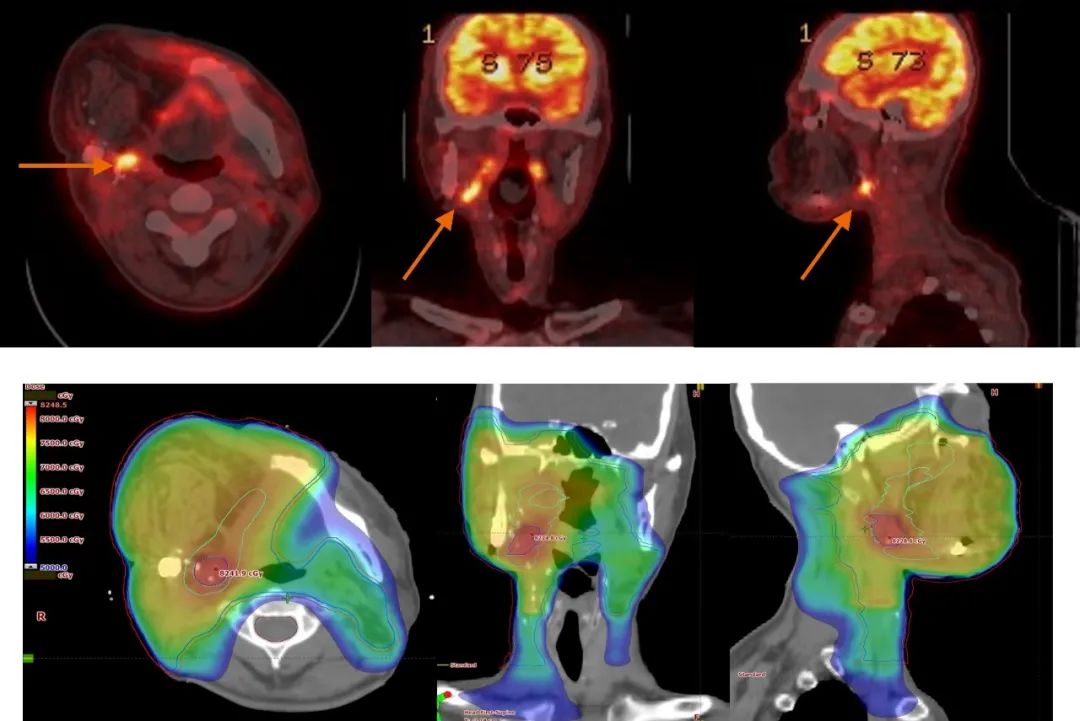 評估腫瘤放療后腫瘤治療效果,往往需要在纖維化、壞死或瘢痕組織中尋找腫瘤是否殘留、復發,傳統檢查很難從形態或密度上進行判別。放化療后通過PET/CT評估頸部殘留病變已成為鑒別病灶的標準,可避免不必要的頸部清掃。