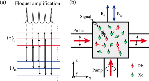 理論計算和實驗研究首次展示了Floquet系統可以實現多個頻率待測磁場兩個數量級的同時量子放大,測量靈敏度達到了飛特斯拉級別。