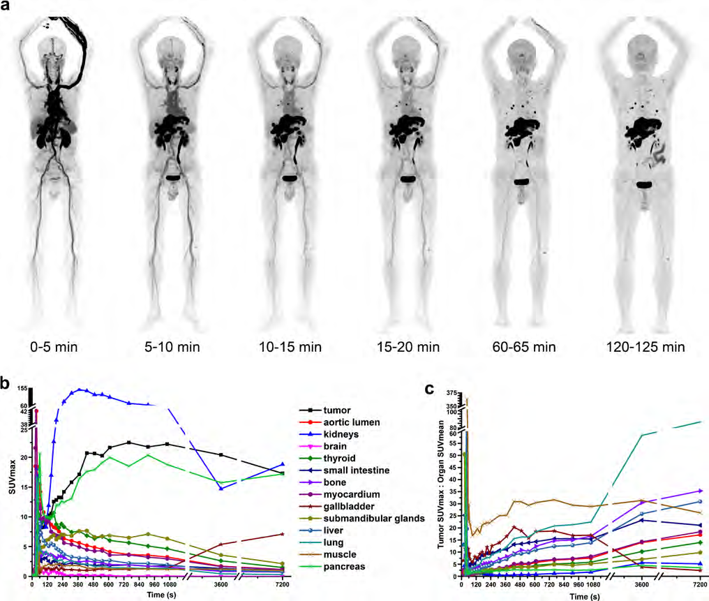 圖a:[18F]FAPI-42患者在5,10,15,20,65和120分鐘的MIP圖