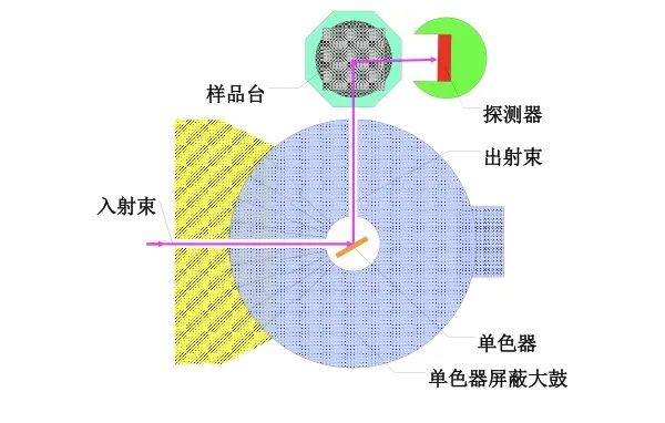 中子衍射利用反應堆或散裂中子源產生的中子,經過各類導管到達單色器上,經單色器聚焦后在試樣(文中的大個頭“鐵——Fe”)上產生衍射,經過準直器(中子之后的困難)才能到達探測器上,顯示試樣的衍射信息。中子衍射相關信息能夠得到材料內部應力、取向信息等,可為航空航天等領域新材料研發,材料性能測定等應用提供強大助力。