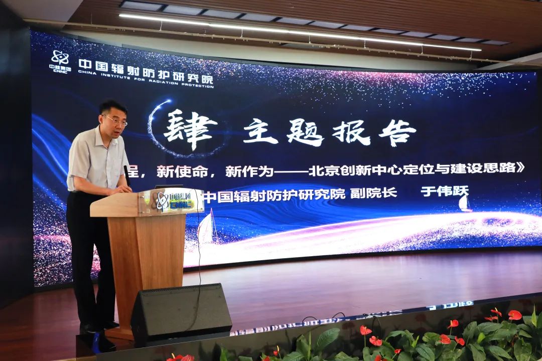 會上,杜學功宣讀了《關于設立“中國輻射防護研究院北京創(chuàng)新中心”的通知》。于偉躍作了題為《新征程、新使命、新作為——北京創(chuàng)新中心定位與建設思路》的主題報告。