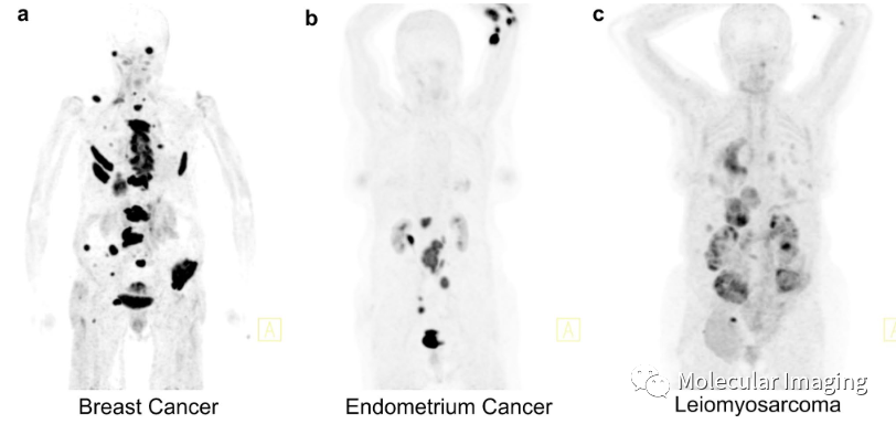 作者使用t檢驗比較不同患者組的年齡結(jié)構(gòu),結(jié)果顯示組內(nèi)的年齡分布沒有顯著差異([68Ga]Ga-FAPI/[68Ga]Ga-PSMA t檢驗值:− 1.261,p值:0.217;[68Ga]Ga-FAPI/[68Ga]Ga-DOTATOC t檢驗值:1.364,p值:0.179),所以三組患者間的可比性不受年齡因素顯著影響。在性別分布方面,[68Ga]Ga-DOTATOC(59%男性)和[68Ga]Ga-FAPI(75%男性)之間的商數(shù)相似,而雖然只有男性患者接受了[68Ga]Ga-PSMA PET/CT,這會產(chǎn)生一定的性別偏見,但與所得結(jié)果的解釋無關(guān)。