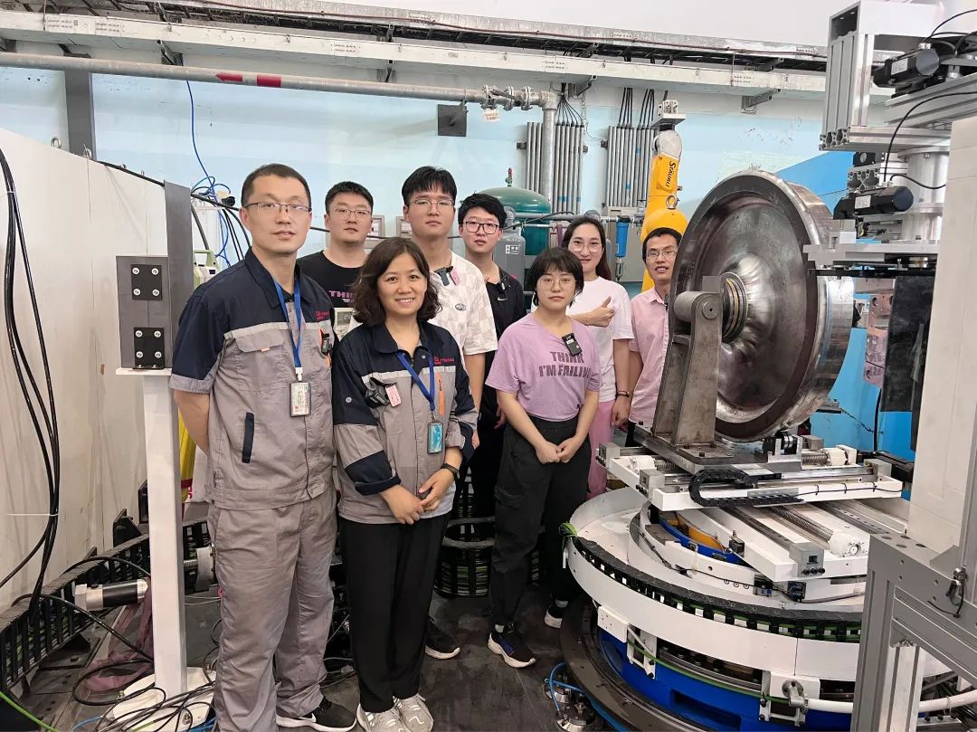 作為列車與鐵軌接觸的唯一部件,車輪是列車安全穩定運行的重要保障。車輪的殘余應力貫穿其結構設計、加工制造及服役的全壽命周期,是導致金屬疲勞的關鍵因素之一,因此對其精準評估至關重要。在此次實驗中,聯合團隊針對服役100萬公里的進口車輪和尚未服役的國產車輪,利用中國先進研究堆中子科學平臺的工程應力譜儀,充分發揮中子的深穿透優勢,完成了兩個均重逾300公斤、直徑約1米、測試深度達40余毫米的全尺寸不銹鋼高鐵車輪的殘余應力無損檢測。