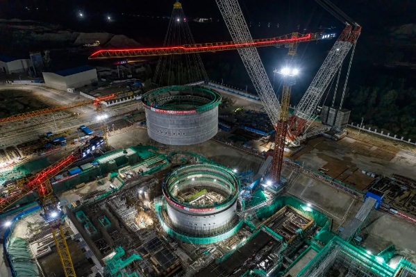 2022年7月5日22點32分起吊,6日0:08分全球首堆“玲龍一號”反應堆廠房鋼制安全殼上部筒體順利吊裝就位,比計劃提前70天完成進度目標,為高質量推進小堆工程建設奠定了堅實基礎。“玲龍一號”工程建設進展順利,標志著我國在小型模塊式壓水堆開發與利用方面走在了世界前列。