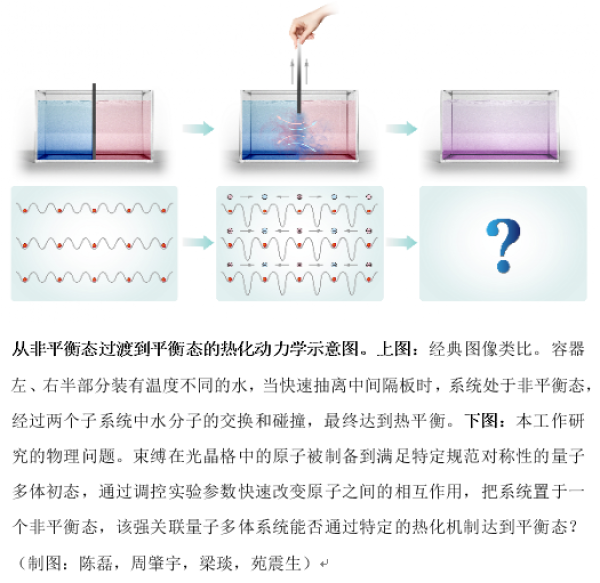 規(guī)范場理論是現(xiàn)代物理學的基礎,如描述基本粒子相互作用的量子電動力學、標準模型等是滿足特定群對稱性的規(guī)范場理論,在粒子物理學、宇宙學以及凝聚態(tài)物理學等領域得到廣泛應用。由于其求解復雜度高,規(guī)范場理論體系中仍有許多開放問題。其中,規(guī)范場理論描述的物理系統(tǒng)是否可以從遠離平衡態(tài)經過演化達到熱平衡備受關注。該問題的解決,有助于理解高能物理中重核碰撞的問題,也將為現(xiàn)代宇宙學中大爆炸早期物質的形成提供了物理解釋。但是,使用經典計算機求解復雜的規(guī)范場理論是公認難題,量子模擬器為解決該問題提供了新路徑。