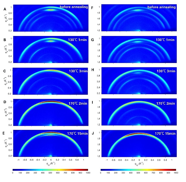 圖2 原位GIWAXS測(cè)試表征鈣鈦礦薄膜結(jié)晶過(guò)程