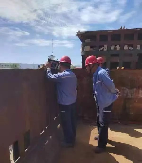 當他們從罐體上下來時,已經是下午五點半多了。“球罐檢驗是戶外作業,夏季溫度高,我們只有早開工晚收工,盡量避免中午11點至下午3點的高溫時段作業,熱點、曬黑點沒關系,每一個數據都是我們親自測量的,有這樣第一手的數據,我們才會對檢驗報告有信心!由于工期緊,如果避開中午高溫休息,誤了工期將給使用單位方帶來很大的經濟損失,我們只有利用節假日加班且全天作業。”現場的檢驗人員說。