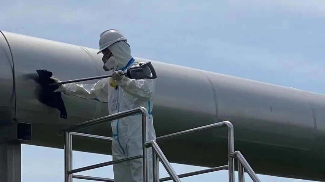 上午9時30分,人站在室外已感受到熱浪滾滾,這樣的高溫天進臥式儲罐是一種怎樣的體驗?“相比外部作業,罐內檢驗更難受,空間狹窄,感覺就是穿著衣服蒸桑拿。”干了十幾年壓力容器檢驗的工作人員說。確認檢測環境安全后,4名檢驗人員換好橙色工作服,穿戴好防護用具,還要提前做好個人防暑工作。