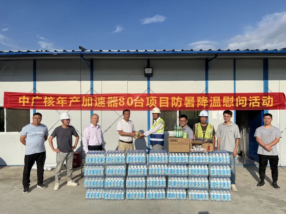 岳文強(qiáng)代表工會(huì)向一線員工送上清涼飲品、藿香正氣液等防暑降溫物資,叮囑大家要注意勞逸結(jié)合,及時(shí)補(bǔ)水,保持良好的工作狀態(tài),從“安全、質(zhì)量、進(jìn)度、技術(shù)、投資、環(huán)境”六個(gè)方面加強(qiáng)過程把控,加快推進(jìn)各項(xiàng)工作,確保順利完成年度建設(shè)目標(biāo),助力中廣核醫(yī)療健康事業(yè)高質(zhì)量發(fā)展。