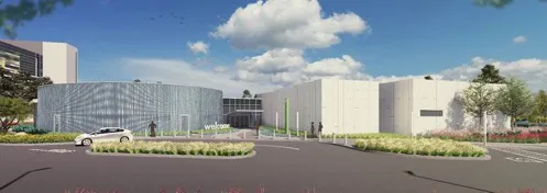 藝術家對 Kaiser Permanente Downey 醫療中心最近在 Bellflower 的放射腫瘤治療中心的演繹。