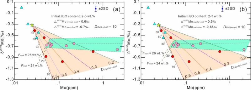 綜上,Mo同位素體系可作為示蹤高硅花崗巖巖漿演化過程的有效工具。 相關(guān)研究成果近期發(fā)表在國際地球化學權(quán)威期刊Geochimica et Cosmochimica Acta上,該研究受中科院戰(zhàn)略性先導科技專項、第二次青藏科考、國家自然科學基金、中國博士后科學基金和所長基金等項目的聯(lián)合資助。