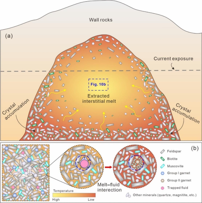 圖3. 正嘎花崗巖巖漿房晶體-熔體-流體演化過程