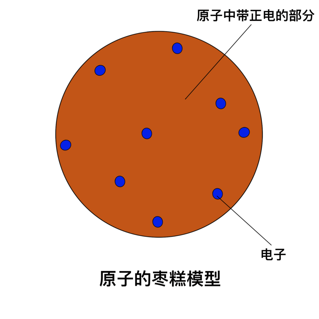 隨著禁錮已久的思想得到解放,原子物理的研究效率大大提高。電子被發現幾年后,考慮到原子本身不帶電,既然電子帶負電荷,那么原子的內部必然有攜帶正電荷的單位將負電荷抵消從而使得整體呈現中性。受限于當時的認知,人們并不能清楚了解原子的準確結構,湯姆森提出了類似于棗糕的模型,帶負電荷的電子就像棗核一樣鑲嵌在帶正電荷的原子內部。