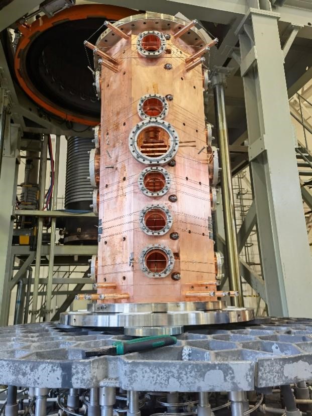 該RFQ腔體尺寸大、結(jié)構(gòu)復(fù)雜,加工精度要求高,研制過程具有很大的挑戰(zhàn)。高能銳新公司項(xiàng)目組與課題組聯(lián)合進(jìn)行技術(shù)攻關(guān),開發(fā)了多項(xiàng)創(chuàng)新的技術(shù)工藝,并持續(xù)優(yōu)化現(xiàn)有工藝流程。研制期間,公司項(xiàng)目組和課題組緊密配合,最大程度降低了疫情對(duì)進(jìn)度的影響,最終保質(zhì)保量完成了研制任務(wù)。