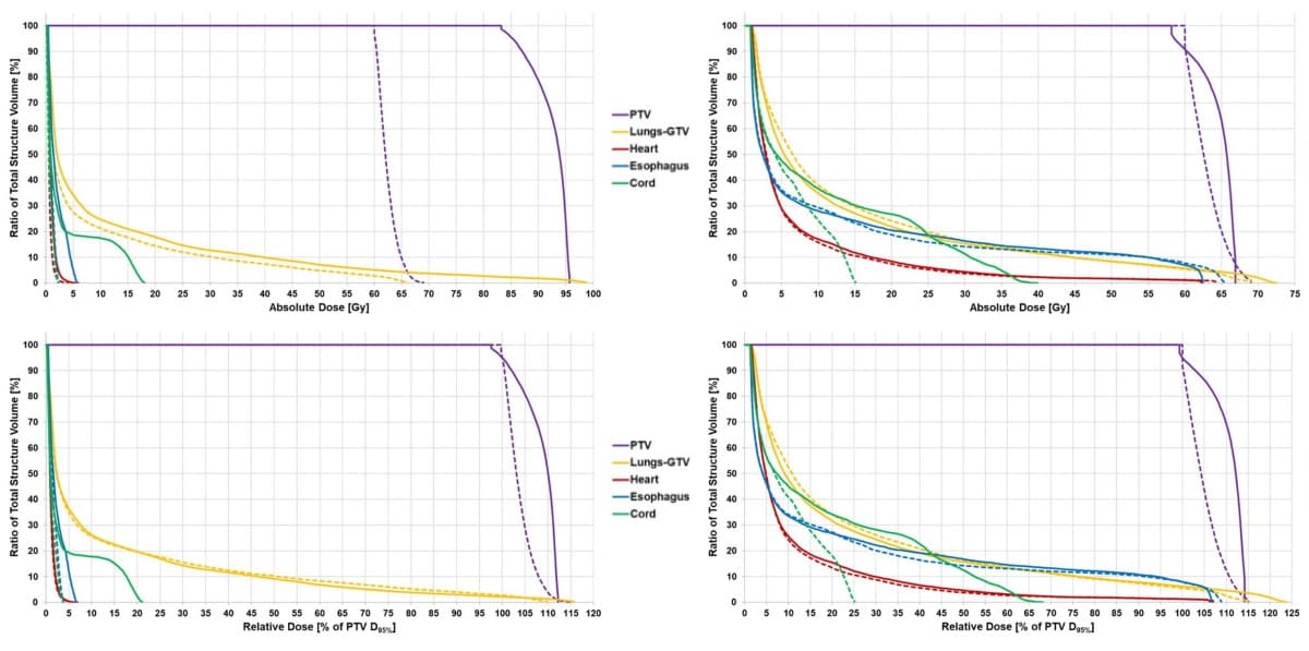 “非小細胞肺癌患者代表了一個高度異質的群體,疾病的范圍和定位存在差異,”主要作者丹尼爾波蘭解釋說。“結合其他解剖變異性,這些因素會極大地影響治療計劃,包括不同優(yōu)化方法的預期收益。因此,對于我們方法的初步可行性測試,我們選擇了五個案例來代表患者大小、腫瘤大小、位置和側向性的多樣性,以及影響預測結果的劑量協變量的多樣性。”