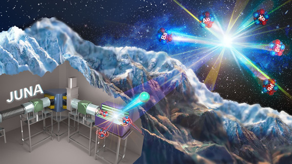 錦屏深地核天體物理實(shí)驗(yàn)(JUNA)研究團(tuán)隊(duì)歷經(jīng)7年,研制了深地實(shí)驗(yàn)室中最高流強(qiáng)的α粒子加速器、高功率13C同位素厚靶及高靈敏度的中子探測(cè)器陣列。結(jié)合錦屏深地實(shí)驗(yàn)室優(yōu)良的低本底環(huán)境,團(tuán)隊(duì)在天體物理能區(qū)(0.24—0.59MeV)內(nèi)精確測(cè)量了13C(α,n)16O反應(yīng)截面,并利用四川大學(xué)3MV串列加速器將測(cè)量能區(qū)擴(kuò)展至高能區(qū)(1.9MeV),首次實(shí)現(xiàn)了13C(α,n)16O反應(yīng)截面從天體物理能區(qū)到高能區(qū)精確地自洽測(cè)量。