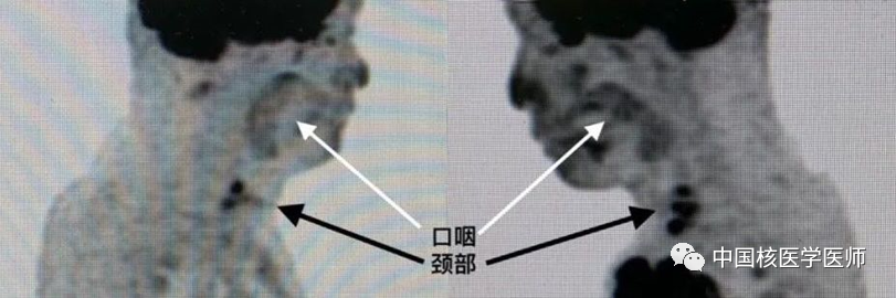 最后顯像結果示,二位的鼻子、口咽和頸部都有高代謝偽影。