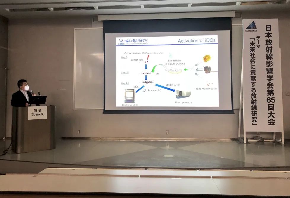 日本放射線影響學會對馬立秋在日本工作期間主導的,而后延續至中國的一系列科研成果及其本人給予了高度評價,稱“這項成果對于推動粒子束治療法在抗癌轉移方面的臨床應用至關重要。馬立秋博士以其豐富而專業的科研技術經驗和中日多家知名科研機構的從業經歷,已然在粒子束治癌領域成為中日間科技合作的橋梁”。會上,馬立秋受邀作了題為《粒子束-樹狀細胞聯合療法的癌轉移抑制效果及其機制》的大會報告。