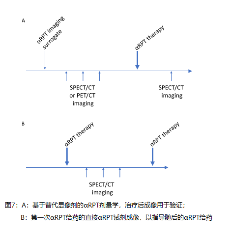 C2的潛在解與c1密切相關。劑量測定驅動的 α rpt的潛在成像選項如圖7所示。多個定量SPECT/CT或PET/CT圖像是實現精確劑量測定的首選。描述了兩種不同的方法。一種依賴于替代顯像劑[78–82],另一種依賴于直接成像αRPT的第一部分。使用單時間點技術得出的吸收劑量值[83–85]必須附有其不確定性的估計值,以便明確估計吸收劑量的準確性與單個患者單時間點劑量測定的便利性之間的權衡。在所有情況下,目標都是在劑量測定計算中使用成像信息,其結果將有助于以患者特定的方式調整AA。總體目的是用治療有效的AA治療每位患者,該AA不會引起過度毒性。正如放射性碘的經驗所表明的那樣,如果在長時間內進行治療,則高效的治療容易因負責濃縮治療劑的表型喪失而產生耐藥性 [86]。
