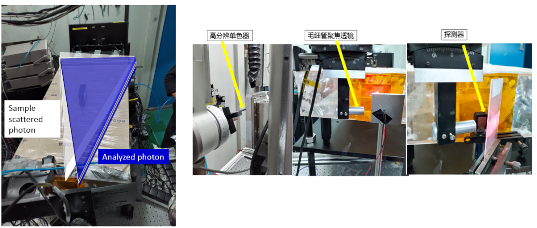 圖2. 分析晶體測試裝置,其中,左圖給出了散射光和分析晶體分析光路示意圖