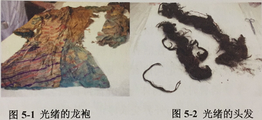 2008年,謎底被揭開了。在光緒皇帝死亡100周年之際,國家清史編撰委員會宣布光緒皇帝死于急性胃腸型砒霜(化學成分三氧化二神)中毒。這是國家清史編撰委員會聯合多方力量并利用核技術的研究結果。中國原子能科學研究院利用中子活化分析(核分析技術之一)發現,光緒尸體上僅沽染在部分衣物和頭發(圖5-1、圖5-2)上的砒霜總量就已高達約201.5毫克。根據相關研究,人口服砒稻60~200毫克就會中毒死亡。光緒攝入體內的砒霜總量明顯大于致死量。