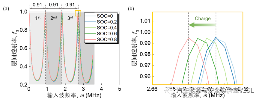 其次,在鋰離子電池內(nèi)部,正負(fù)極與隔膜的周期性排布會導(dǎo)致特定頻率的波無衰減通過或者無法通過的現(xiàn)象,即波禁帶效應(yīng),這部分由于周期性結(jié)構(gòu)排布導(dǎo)致的效應(yīng)被稱為層間耗散;