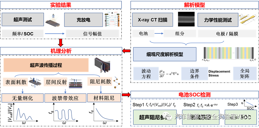 從超聲波在鋰離子電池中的傳播機理出發(fā),闡明了超聲波傳播中的衰減過程,最后提出了一個新的只與鋰離子電池內(nèi)部電化學(xué)性質(zhì)變化相關(guān)的阻尼參數(shù),用來檢測鋰離子電池的荷電狀態(tài)。該研究工作為鋰離子電池的狀態(tài)檢測提供了一種新的思路,可以與TOF(傳播時間)和信號幅值結(jié)合,擴展到鋰離子電池健康狀態(tài)的檢測以及鋰枝晶生長的檢測。