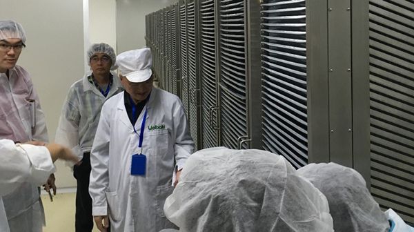 2019年5月,中國廣州威佰昆生物科技有限公司蚊蟲規模飼養設施的蚊蟲幼蟲飼養架。該公司正在利用最先進的蚊蟲規模飼養技術。這些架子以糧農組織/原子能機構糧農核技術聯合處蟲害防治實驗室開發的模型為基礎構建。每個架子都具有每周生產約50萬只雄蚊的能力。(照片來源: J. Bouyer/原子能機構)