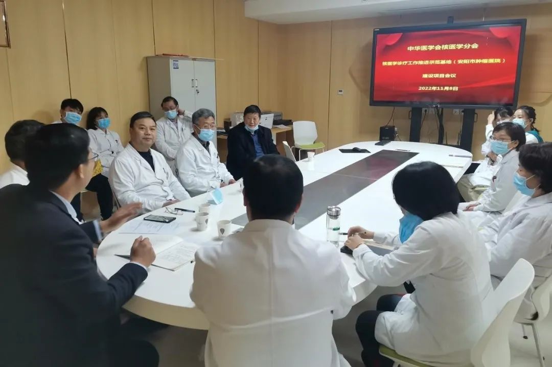 2022年11月8日,中華醫(yī)學會核醫(yī)學分會核醫(yī)學診療工作推進示范基地建設(shè)項目啟動儀式通過線上和線下相結(jié)合的方式在安陽市腫瘤醫(yī)院成功舉辦。中華醫(yī)學會核醫(yī)學分會前任主任委員李亞明教授、河南省醫(yī)學會核醫(yī)學分會主任委員韓星敏教授、山東省醫(yī)學會核醫(yī)學分會前任主任委員楊國仁教授、中國同輻股份有限公司項目負責人作為專家團在線下及線上共同指導;安陽市腫瘤醫(yī)院王能超副院長,核醫(yī)學科、頭頸外科、醫(yī)學影像科等科室負責人及相關(guān)專家參加了此次啟動儀式。