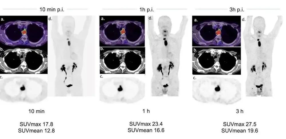 最終,盡管這是一項小型研究,但由于10分鐘和1小時之間的檢測率相似,作者建議注射后10至20分鐘是診斷PET成像采集的最佳時間點。