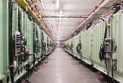 FRIB 加速器長 1,600 英尺,由三段折疊成大致回形針的形狀組成。在這些部分中有許多極冷的真空室,它們使用強大的電磁脈沖交替地拉動和推動離子。FRIB 可以將任何天然存在的同位素——無論是輕如氧還是重如鈾——加速到大約光速的一半.