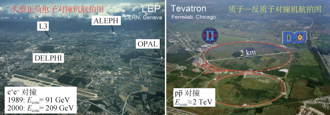 圖2 歐洲核子中心的大型正負電子對撞機(LEP,左)與美國費米國家實驗的質子—反質子對撞機(Tevatron,右)