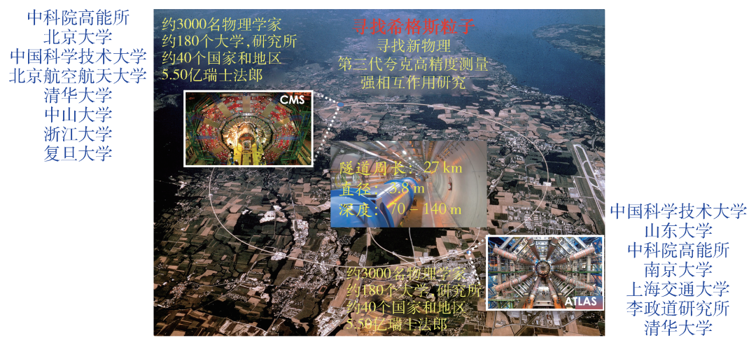 圖5 大型強子對撞機、ATLAS實驗以及CMS實驗示意圖