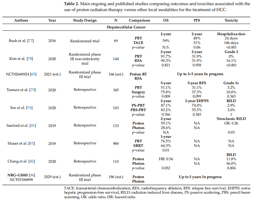 在回顧性分析中,與光子治療相比,質子治療與較低的毒性和更高的生存率相關。目前正在進行進一步的研究,包括質子與光子治療HCC的隨機試驗,以更好地為臨床決策提供信息。