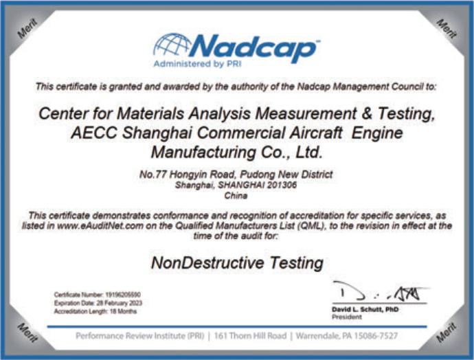 2021年5月,商發制造理化計量中心迎來質量評審協會審核員開展無損檢測體系NADCAP審核,該審核包括實驗室管理體系、四個專業(滲透檢測、磁粉檢測、超聲檢測和射線檢測)的技術體系、現場操作、工藝控制過程等詳細內容。審核員對公司的無損檢測體系給予了高度評價。公司不僅于6月獲得資質證書,且審核有效期由12月延長至18個月。