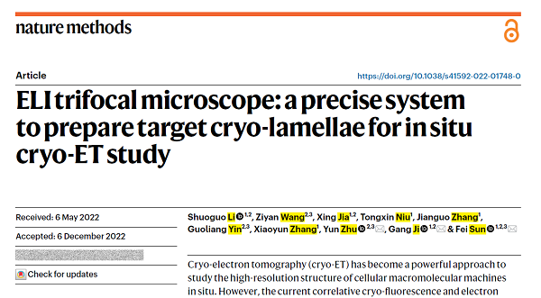 中國科學院生物物理所孫飛研究員、季剛正高級工程師和朱赟研究員為本文的共同通訊作者,蛋白質科學研究平臺生物成像中心高級工程師李碩果、孫飛課題組博士生王子巖為該項工作的共同第一作者,生物成像中心賈星工程師在冷凍熒光樣品制備、牛彤欣工程師在數據處理、張建國高級工程師在冷凍傳輸裝置研制、工程師助理張小云在冷凍光鏡成像、孫飛課題組博士生殷國良在冷凍電鏡數據處理方面參與了該項研究。該研究獲得國家重點研發計劃、國家自然科學基金、中國科學院戰略性先導科技專項(B類)、中國科學院任務/知識創新工程重要方向項目的資助。樣品制備、數據收集和分析等工作受到生物物理所蛋白質科學研究平臺生物成像中心相關工作人員的大力支持和幫助。