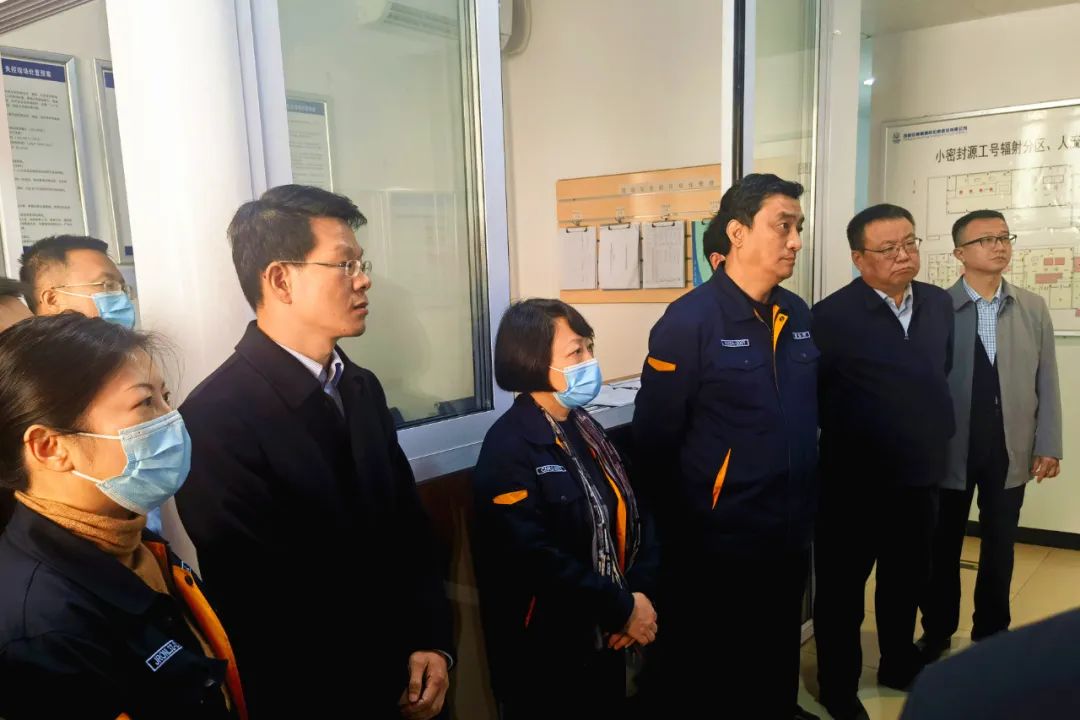 董保同一行聽取了中核高通有關工作匯報,深入了解核技術應用產業發展,以及中核高通在“亞洲最大、世界一流的放射源創新高地,全國領先的核素放藥中心”基地建設進展情況,并實地察看小密封源工號安全生產管理和輻射安全防護等情況。