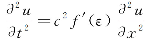 對于線性介質,有f(ε)=ε。受組織不均勻及材料內部微小缺陷影響,超聲波的傳播介質會表現出非線性效應,即f(ε)中還會出現ε的二次項及高次項,此時f(ε)可根據泰勒公式近似分解為: